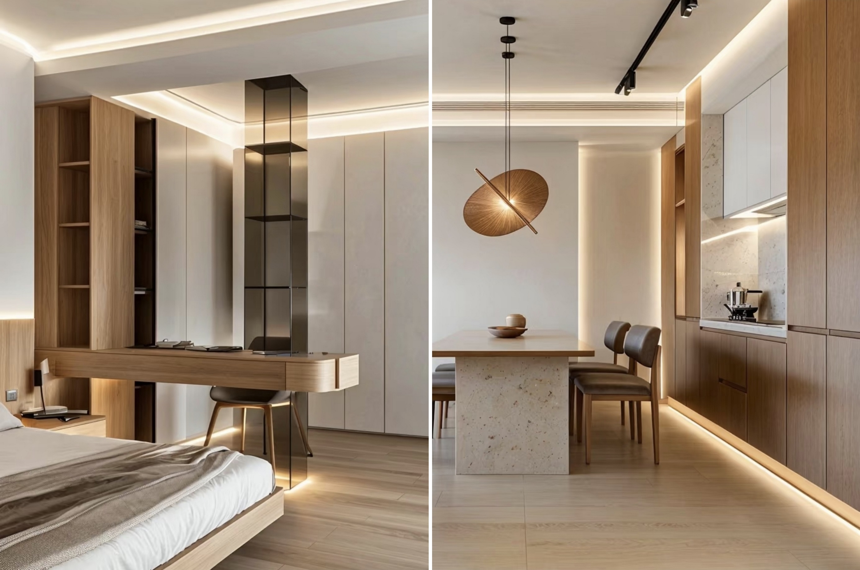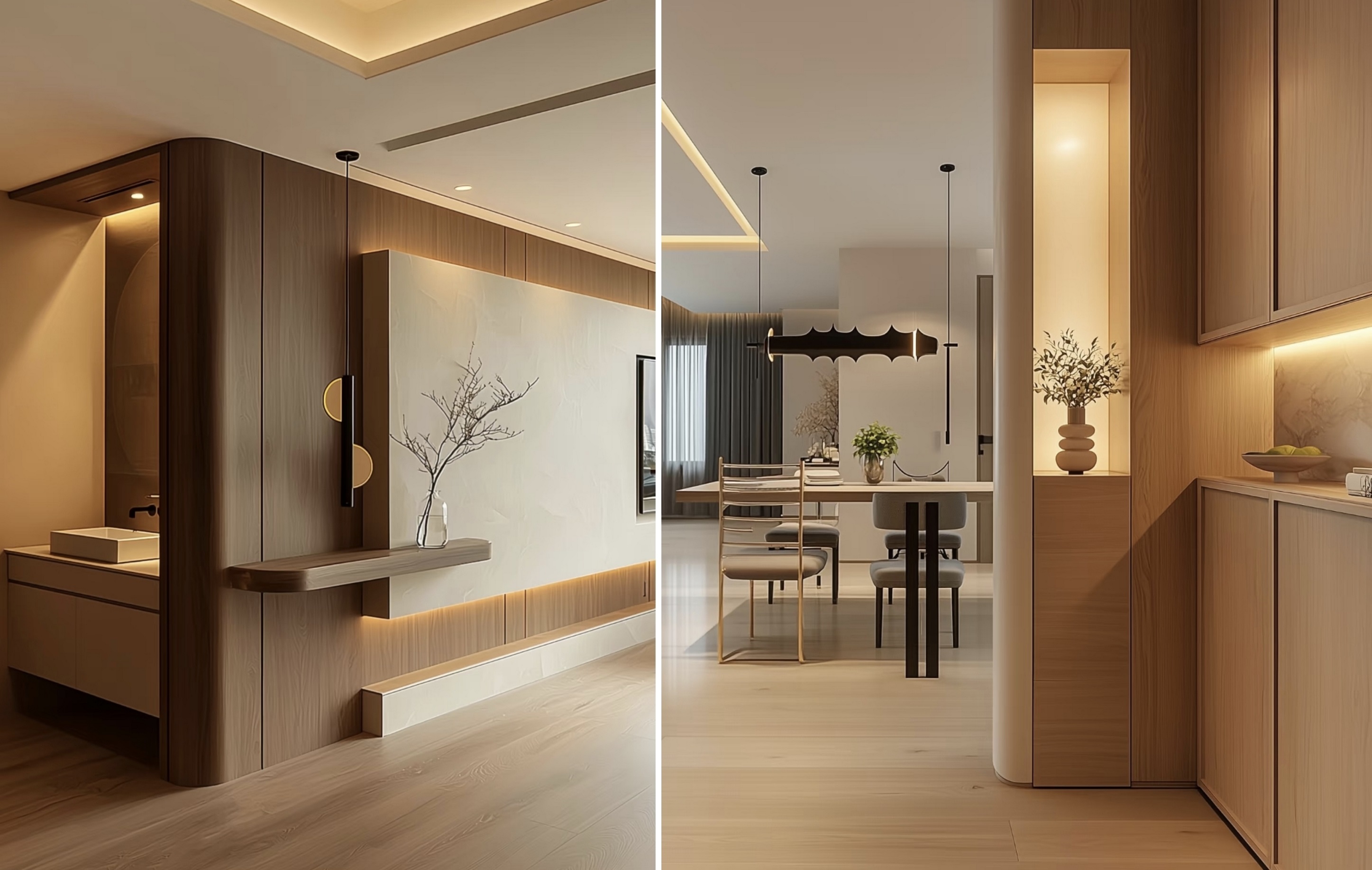 Топло, суптилно прилагођено осветљење претвара простор у уметничко дело.