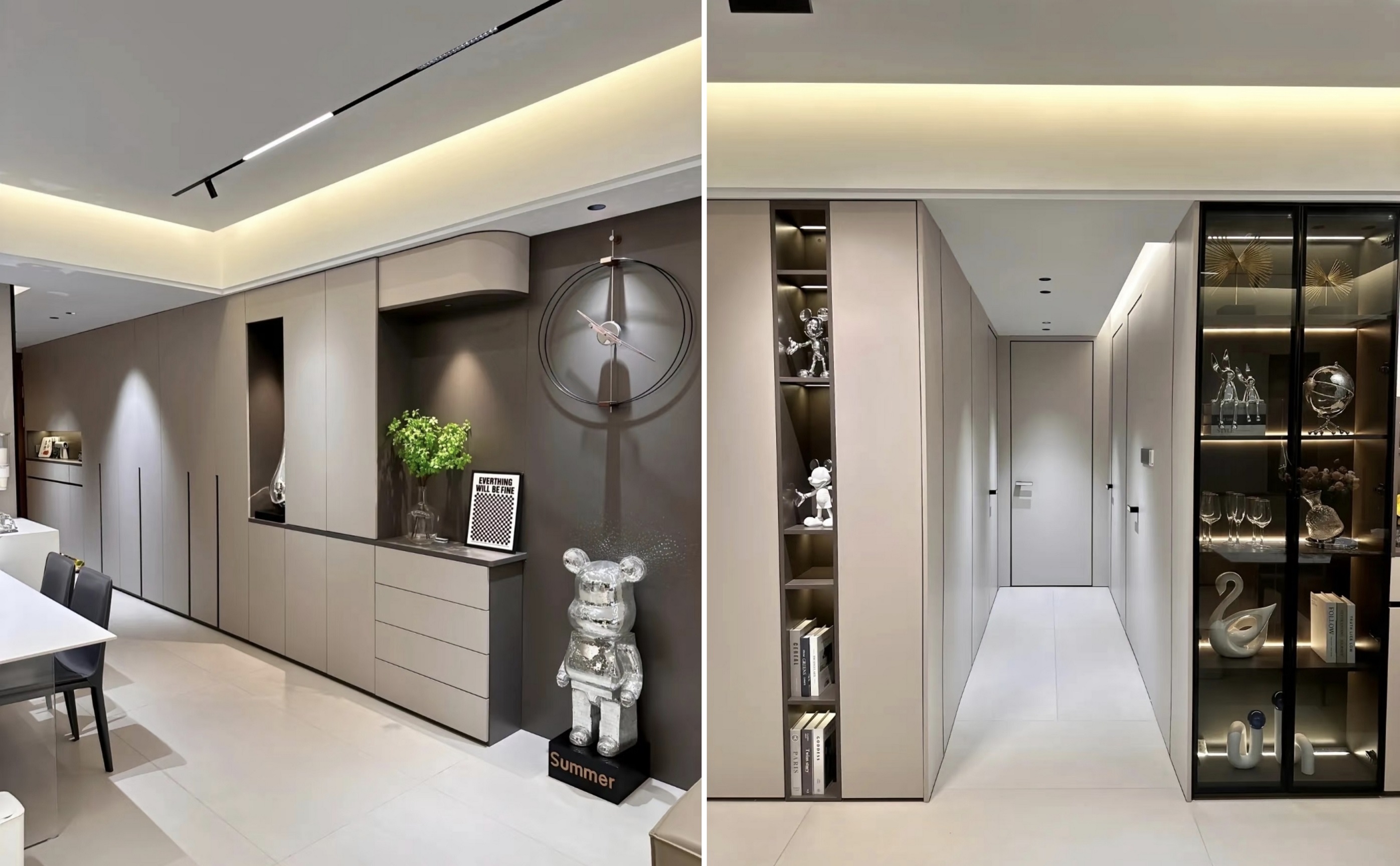 4. Поред ормара, други зидови користе зидне плоче исте боје као и врата кабинета за координиранији светски ефекат.